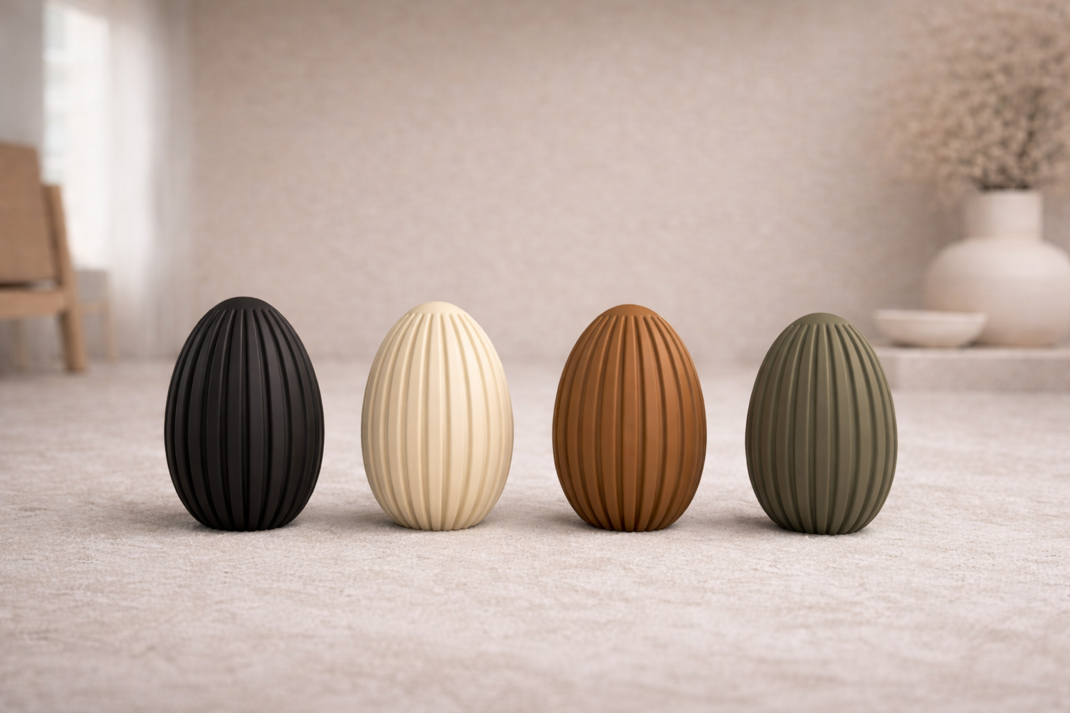 Dieses Designobjekt aus der Dekora.3d Designwerkstatt interpretiert Osterdeko neu – mit klaren Formen, ruhiger Ästhetik und der charakteristischen Oberfläche des präzisen 3D-Drucks. Perfekt für alle, die minimalistische Frühlingsdekoration lieben.
