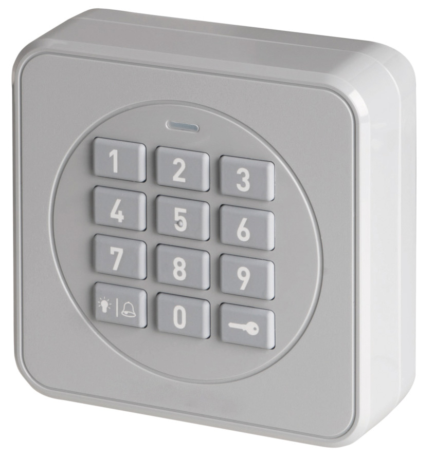 Funkcodetastatur zur Ansteuerung von bis zu 3 Toren. Bedienung mittels 4-stelligen Zahlencode, pro Tor je ein Code.
